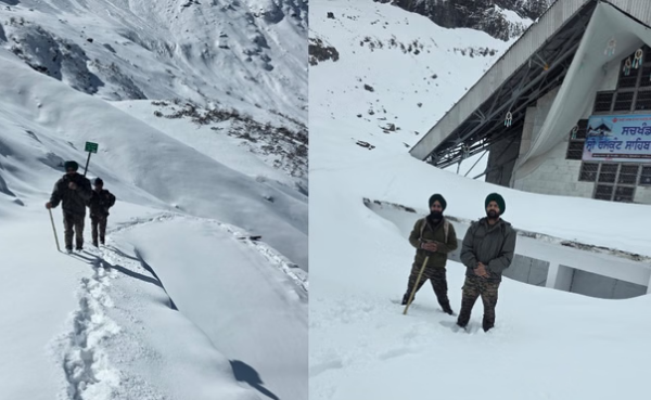 Hemkund Sahib: सेना के जवान और ट्रस्ट के सदस्यों ने की हेमकुंड साहिब मार्ग की रेकी, जमी पांच से छह फीट बर्फ